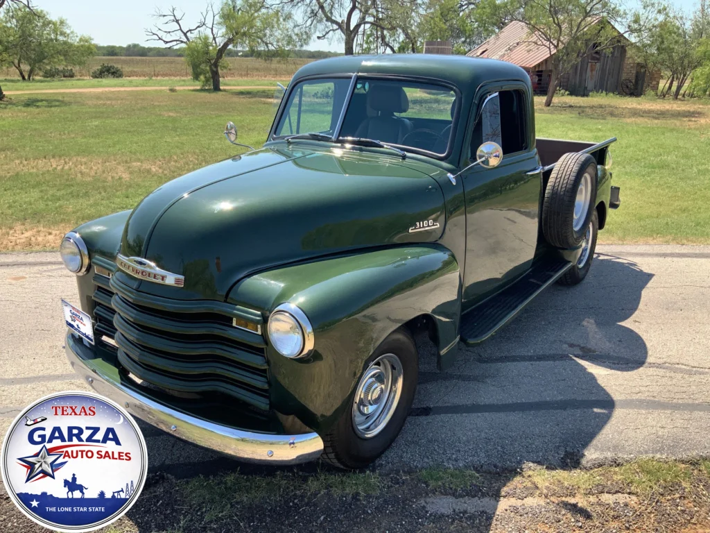 1953 Chevy 3100, fuel-injected 350 V8, Richmond 4-speed, power steering, power disc brakes, A/C, S10 frame, wood bed, Cooper tires, custom stereo.